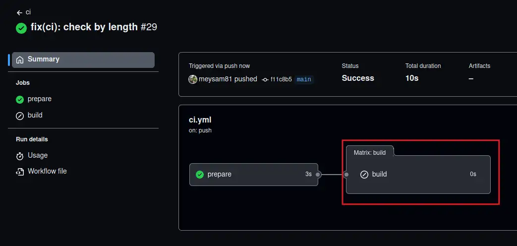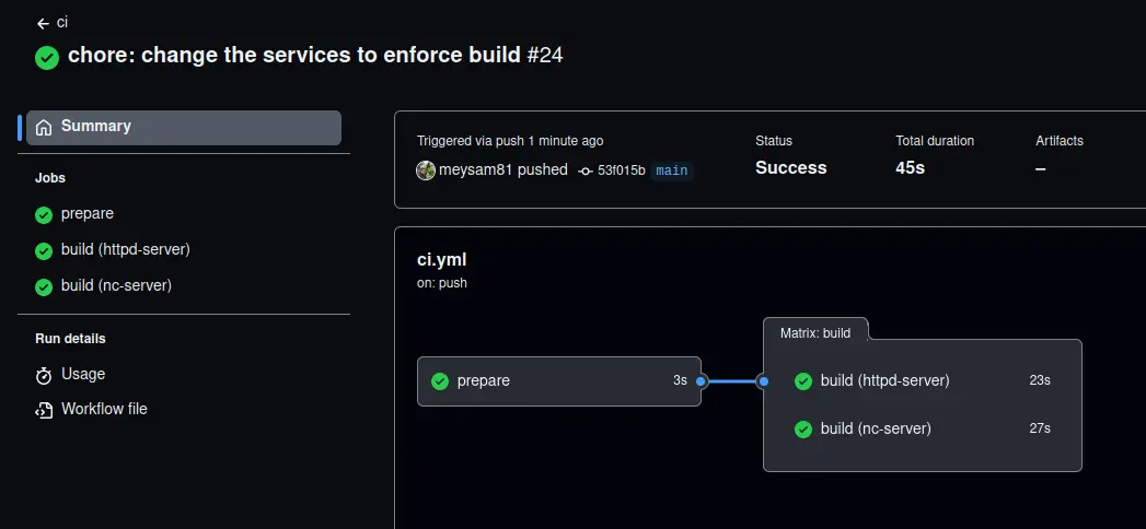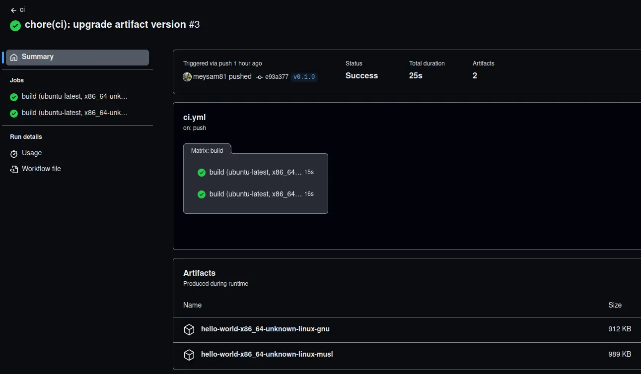 Now, the CI workflow above is great, and it works perfectly fine. Here's proof of the successful run and its uploaded artifacts.
