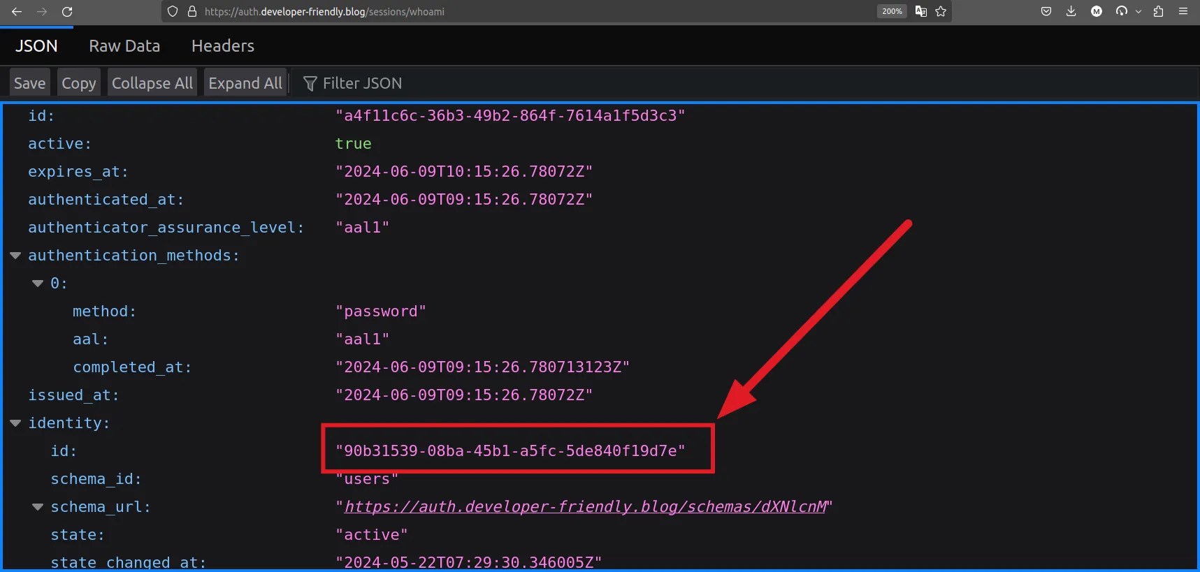 The x-user-id in this response is just the same as if we take the session information from the Kratos itself.